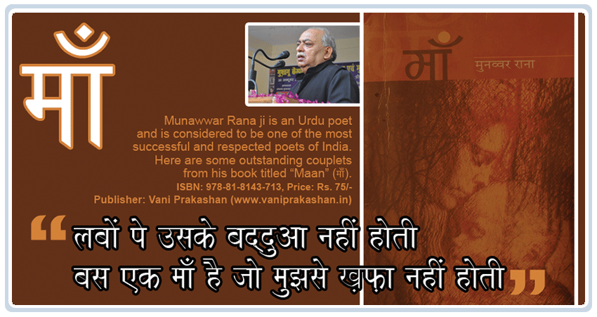 BOOK REVIEW: Word “Mother" in any language sounds like magic. To be a mother is to be a little insane, to love a child so much, so unconditionally, so instinctually, so unselfishly and forever! In his book “Maan”, Urdu Poet - Munnawar Rana ji has beautifully phrased what we all feel about our mothers but had no words to express. Rana ji’s ‘Ghazals’ and ‘Shers’ delightfully glorify mother. Mothers arms are more comforting that anyone else. Mother may not be perfect but there is NO substitute for a mother. With her we deposit all our pain, hurt and worries. Her love and care comforts us like nothing else. Indeed she is comparable with God! This book deserves a place