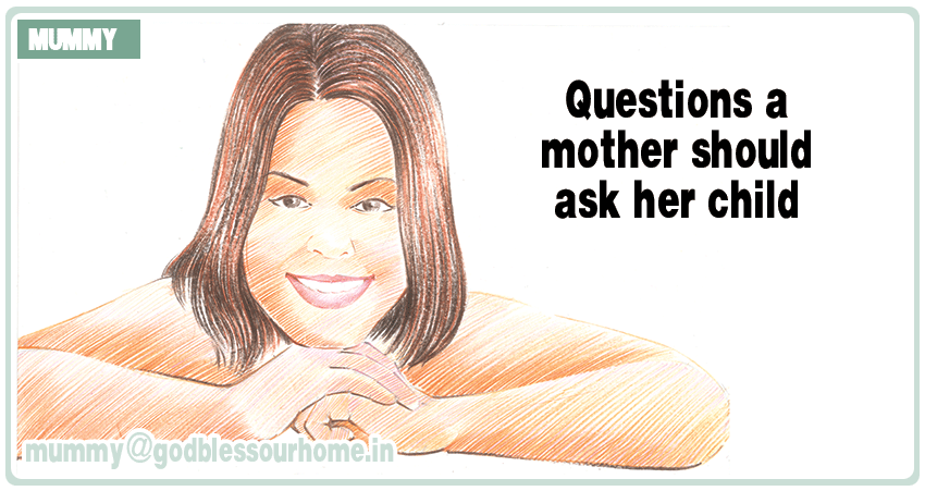 Questions a mother should ask her child. Try Lunch or Dinner with everyone at the table and NO TV today. Here are some questions for you to discuss with your child. Interesting way would be to cut these questions into strips, fold them, and place them in a jar and then pick them out one by one. |