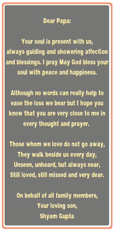 Noble souls like Bharat Bhushan Gupta ji, live forever. |