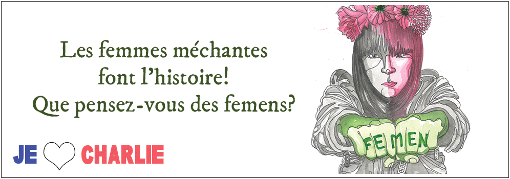 Je suis féministe, tu merde! Les femmes ont toujours été les gardiennes naturelles de l'humanité, de la vie. Le moment est venu de vous montrer qui est le vrai patron! Le silence n'est pas une option. Quand vous voyez les femmes comme des objets sexuels, quelles armes avons-nous? Nos seins nus? L'esthétique de mon corps est de soutenir ma révolution, je suis intrépide, je suis rebelle! Les femmes méchantes font l'histoire! Que pensez-vous des femens? Parlez ici!