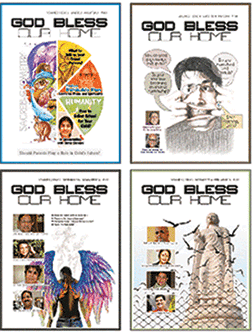 In "God Bless Our Home", the content is presented into 6 characters/ sections, namely: Grandfather, Grandmother, Daddy, Mummy, Brother and Sister. It is a magazine of the family, for the family and by the family. These 6 characters are presented as real characters of a real family. Every time a new family publishes their own magazine, according to their own thinking, likes and dislikes. Students can also email these families and interact Each family member has his/her own email address for interaction/ communication. 75% of the content is focused on three key areas: (1) God & Faith, (2) Family Bonding/Focus; and (3) Student Learning or related topics. In addition there are some student/family relevant current affairs, News Items, Comics, Jokes, in short magazine is full of Love smiles and amuse.
